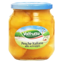 Składniki: brzoskwinie, woda, cukier, syrop glukozowo-fruktozowy, regulator kwasowości: kwas cytrynowy, przeciwutleniacz: kwas askorbinowy masa netto: 570g Wartości odżywcze w 100 g: Energia 319 kj/ 75 kcal Tłuszcz 0,1 g w tym kwasy tłuszczowe nasycone 0 g Węglowodany 17,5 g w tym cukry 17,5 g Białko 0,5 g Sól 0 g Kraj pochodzenia: Włochy Sposób przechowywania: przechowywać w suchym i chłodnym miejscu, z dala od promieni słonecznych Data ważności: