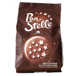 Ciastka czekoladowe z gwiazdkami od Pan Di Stelle to klasyczne, włoskie ciasteczka, które łączą w sobie czekoladowe ciasto i słodką posypkę w kształcie gwiazdek. Idealne na każdą okazję – od podwieczorku po małą przekąskę do kawy.