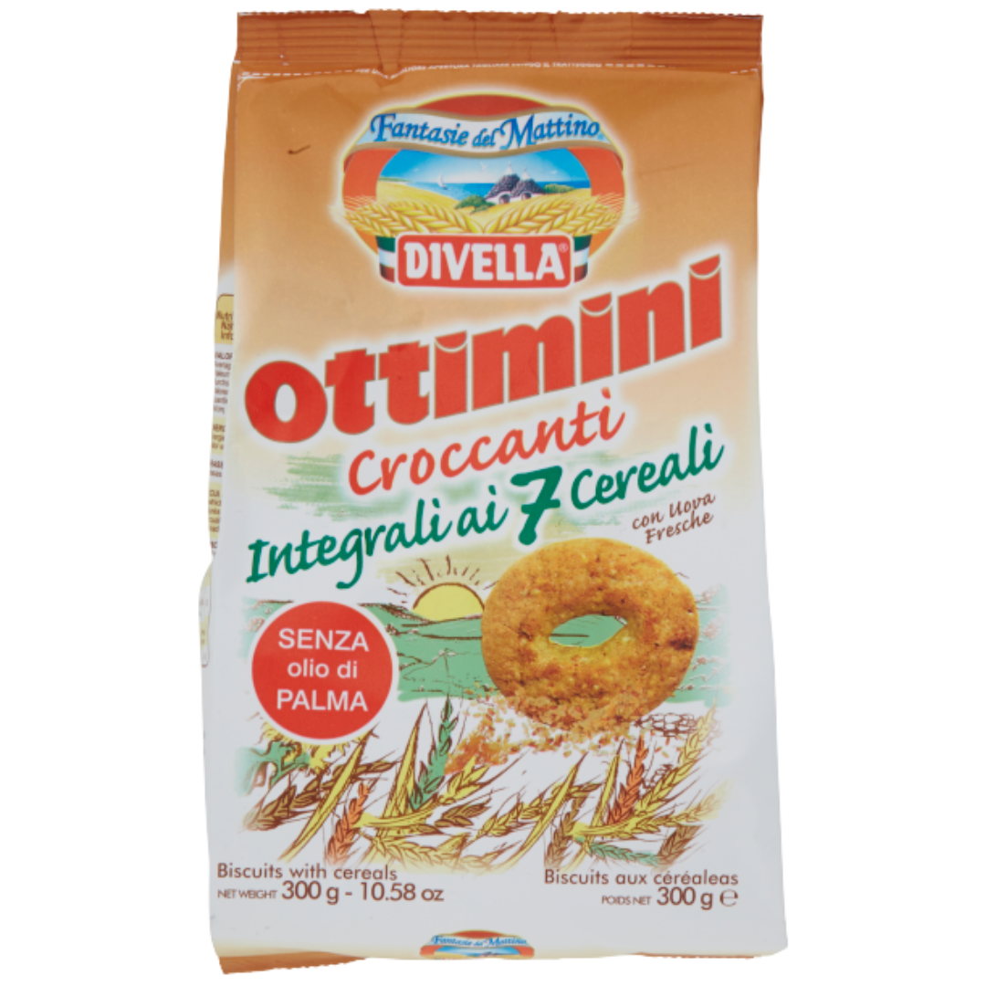 Ottimini Integrali ai 7 Cereali od Divella to kruche włoskie ciasteczka przygotowane z mieszanki siedmiu zbóż. Proste, aromatyczne i idealne na codzienną, niewielką przekąskę.