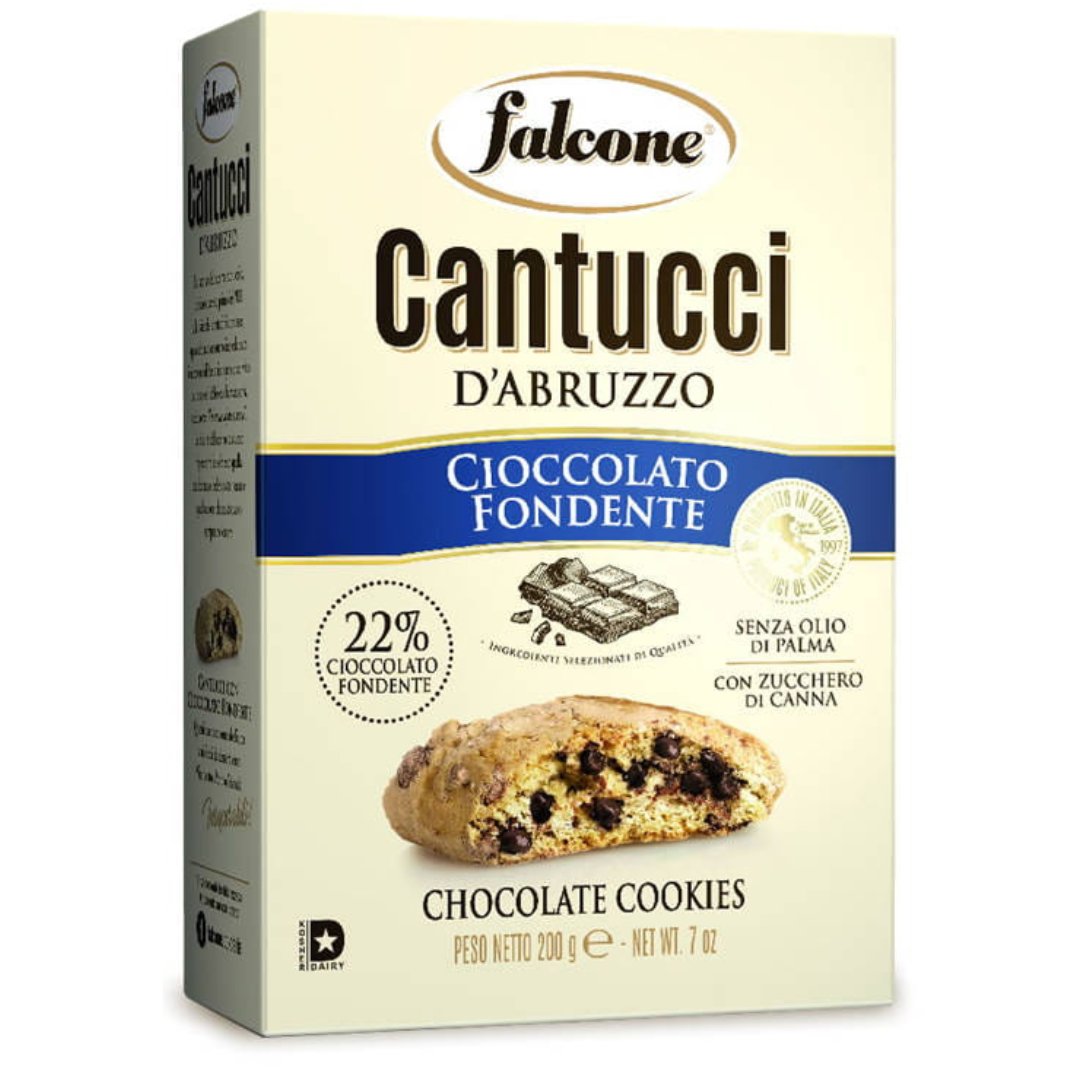 Cantucci d’Abruzzo od Falcone to tradycyjne włoskie, chrupiące ciasteczka wzbogacone kawałkami gorzkiej czekolady. Wyraziste i aromatyczne, idealne na słodką chwilę w ciągu dnia.
