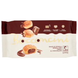 Bocconcini od Matilde Vicenzi to małe, warstwowe ciasteczka z ciasta francuskiego, wypełnione gładkim kremem czekoladowym. Delikatne, lekkie i pełne aromatu kakao.