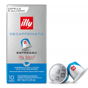 Kapsułki Nespresso Decaffeinato od Illy to kawa bezkofeinowa, idealna dla osób, które chcą cieszyć się smakiem pysznego espresso, ale unikają kofeiny. Każda kapsułka oferuje wysoką jakość włoskiej kawy, zachowując intensywność i bogaty aromat, typowy dla Illy.