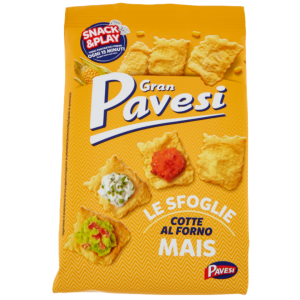 Krakersy Le Sfoglie al Mais od Pavesi to lekkie, chrupiące krakersy kukurydziane, które mają subtelny smak, idealny do różnorodnych dodatków.