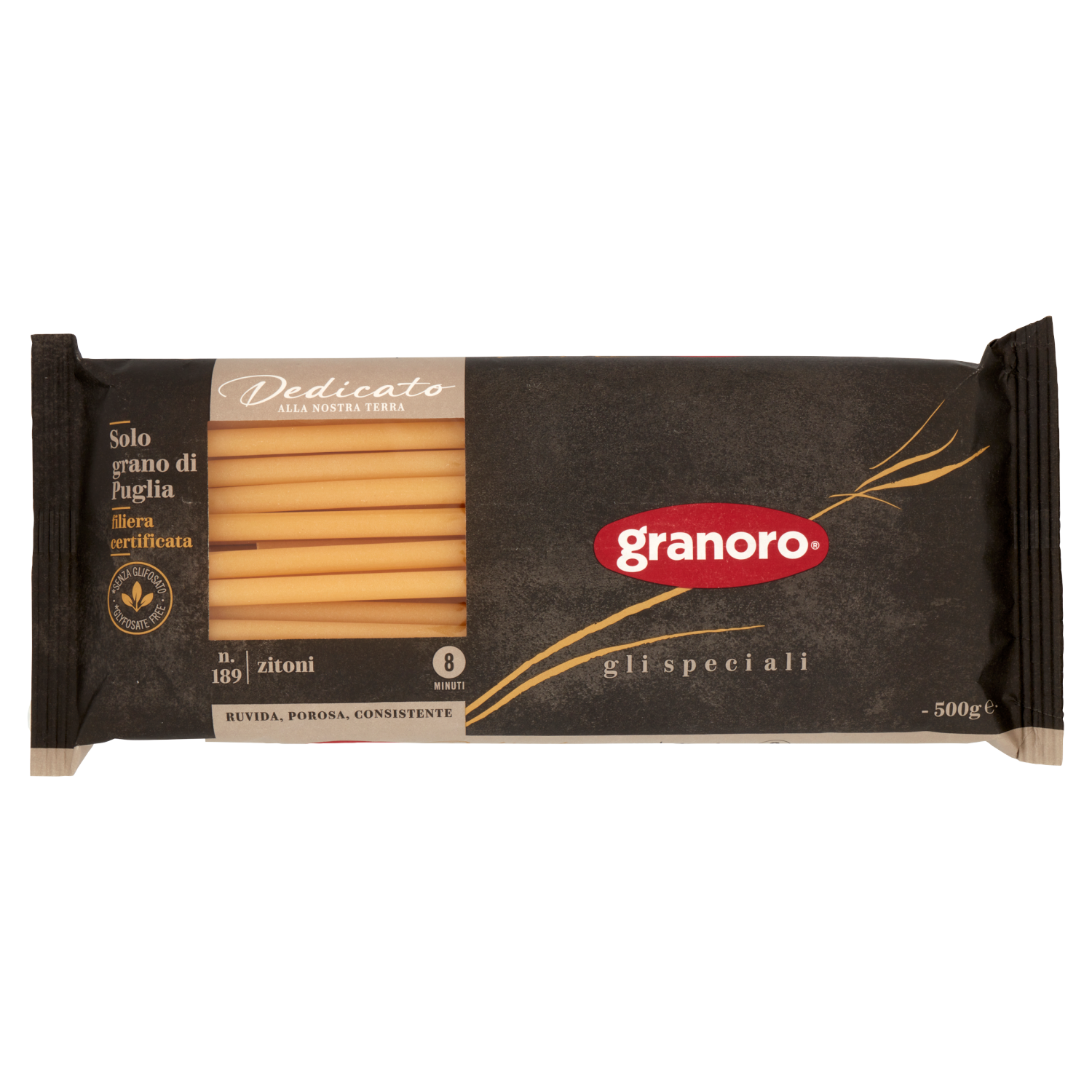 Granoro Makaron Dedicato Zitoni Lunghi N.189 to wyjątkowa propozycja dla miłośników włoskiej kuchni. Wykonany z najwyższej jakości pszenicy durum, ten makaron cechuje się doskonałą elastycznością i zdolnością do absorpcji sosów, co czyni go idealnym wyborem do różnorodnych potraw. Każde opakowanie zawiera 500g makaronu, który zachwyci swoim smakiem i teksturą. Makaron Dedicato Zitoni Lunghi znakomicie komponuje się z tradycyjnymi sosami, świeżymi warzywami i aromatycznymi ziołami. Wyjątkowo długi kształt makaronu pozwala na kreatywne podejście do serwowania dań, dodając im niepowtarzalnego charakteru. Wybierając Granoro, stawiasz na autentyczny smak Włoch, który z łatwością przeniesiesz do swojej kuchni.