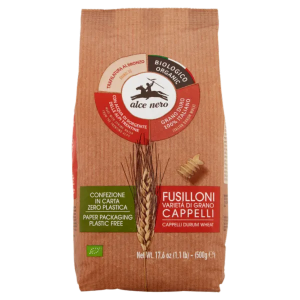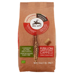 To klasyczne fusilli, ale zrobione z oryginalnej, starej odmiany pszenicy twardej – Senatore Cappelli – uprawianej ekologicznie we Włoszech. Ten makaron ma nie tylko wyrazisty, zbożowy smak, ale też głębszy kolor i bardziej „ziemisty” charakter niż zwykłe makarony z semoliny.