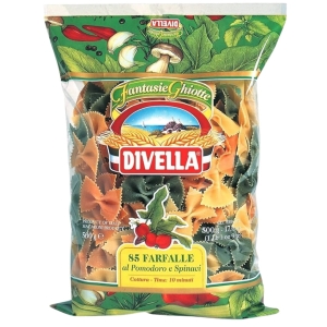 Divella to marka z wieloletnią tradycją, znana we Włoszech i na świecie z produkcji makaronu najwyższej jakości. Farfalle Tricolore powstają z najlepszej pszenicy durum oraz naturalnych dodatków roślinnych, które nadają makaronowi wyjątkowe barwy, bez kompromisów w smaku czy konsystencji.