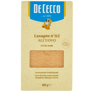 De Cecco to marka z ponad 130-letnią historią, która od początku swojej działalności stawia na najwyższą jakość produktów. Makaron Lasagna n°112 all'Uovo powstaje z najlepszych surowców, a proces produkcji obejmuje powolne suszenie w niskiej temperaturze oraz formowanie przy użyciu matryc z brązu, co nadaje makaronowi charakterystyczną porowatość, idealną do absorbowania sosów.