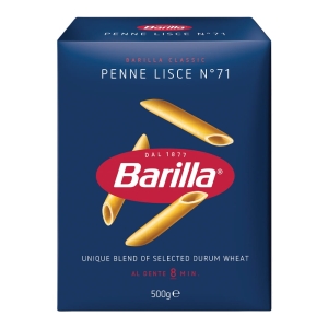 Makaron Penne Lisce n°71 od Barilli to ukośnie ścięte rurki bez rowkowania, które wyróżniają się gładką, delikatną powierzchnią. To wariant klasycznego kształtu, który lepiej podkreśla lekkość sosów i kremowych kompozycji. Idealny do dań, gdzie liczy się subtelna tekstura i płynna, jedwabista konsystencja.