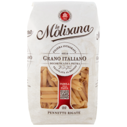 Makaron Pennette Rigate n°22 od La Molisana to mniejsza wersja klasycznych penne rigate, z tą samą ukośnie ściętą formą i wyraźnym rowkowaniem. Dzięki kompaktowemu rozmiarowi sprawdza się świetnie w daniach, gdzie makaron ma subtelnie łączyć się z sosem, a nie dominować na talerzu.