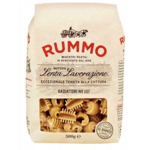 Makaron Radiatori n°137 od Rummo to krótki, pofalowany makaron inspirowany kształtem żeberkowych grzejników. Ten nietypowy format nie tylko świetnie wygląda, ale przede wszystkim perfekcyjnie wiąże się z sosem, który wnika w każde załamanie. To makaron stworzony do dań pełnych smaku i faktury.