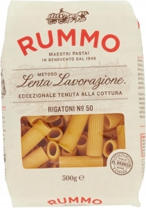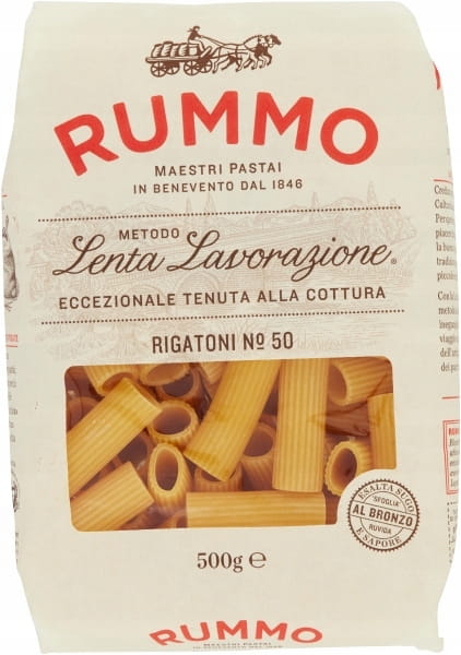 Makaron Rigatoni n. 50 marki Rummo to doskonały wybór dla miłośników włoskiej kuchni, ceniących sobie autentyczny smak i najwyższą jakość. Każde opakowanie zawiera 500 gramów grubych rurek o unikalnym prążkowanym kształcie, które świetnie zatrzymują sosy, zapewniając intensywne doznania kulinarne. Produkowany według tradycyjnych włoskich receptur, z najlepszej semoliny z twardej pszenicy, gwarantuje doskonałą sprężystość i niepowtarzalny smak. Makaron Rigatoni n. 50 to idealna baza do klasycznych włoskich dań, takich jak Amatriciana, Bolognese czy Carbonara. Wypróbuj i odkryj na nowo smak potraw, które cieszą się uznaniem na całym świecie.