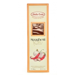 Dalla Costa to renomowana włoska marka, która słynie z produkcji wysokiej jakości makaronów. Ten makaron jest wykonany z najlepszej jakości mąki semoliny i wzbogacony naturalnym aromatem czosnku i peperoncino, co nadaje mu unikalny smak i charakter.