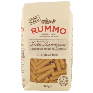 Ziti Tagliati to skrócona wersja klasycznych ziti – grubych, gładkich rurek, które pochodzą z południa Włoch, zwłaszcza z okolic Neapolu. W wersji od Rummo mamy do czynienia z makaronem o solidnej strukturze, wyprodukowanym z pszenicy durum i przeznaczonym do treściwych, aromatycznych dań.