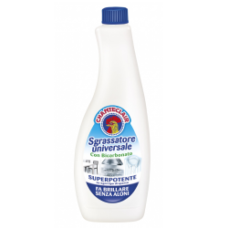 To zapasowy odtłuszczacz w wersji ricarica, przeznaczony do ponownego użycia z atomizerem ze starej butelki. Sprawdza się w kuchni, łazience i innych miejscach, gdzie pojawia się tłuszcz oraz codzienne zabrudzenia. Dzięki obecności bicarbonato formuła pomaga radzić sobie z osadami, a większa pojemność to wygoda przy częstym sprzątaniu.