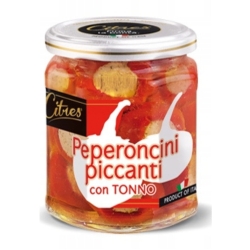 Skład: Papryczki chili 42%, olej słonecznikowy 32%, tuńczyk 20%, chleb, kapary, skrobia ziemniaczana, pietruszka, ocet winny, sól, aromat papryczki chili, regulatory kwasowości: kwas mlekowy, kwas cytrynowy Masa netto: 190g Wartości odżywcze w 100g: Energia 267kj/ 64kcal Tłuszcz 2.4g w tym kwasy tłuszczowe nasycone 0.3g Węglowodany 1.3g w tym cukry0.2 g Błonnik 4.9g Białko 6.9g Sól 1.5g Kraj pochodzenia: Włochy Sposób przechowywania: przechowywać w suchym i chłodnym miejscu, z dala od promieni słonecznych Data ważności:
