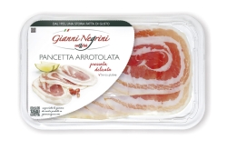 Składniki: boczek wieprzowy, sól, dekstroza, przyprawy, naturalne aromaty, przeciwutleniacz E301, konserwanty E250, E252 Masa netto: 80g Wartości odżywcze w 100g: Energia 2179kj/ 528kcal Tłuszcz 52,0g w tym kwasy tłuszczowe nasycone 17,0g Węglowodany 0,0g w tym cukry 0,0g Białko 15,0g Sól 3,0g Kraj pochodzenia: Włochy Sposób przechowywania: przechowywać w temperaturze pomiędzy 0°C i +4°C. Po otwarciu spożyć w ciągu 24h Data ważności: