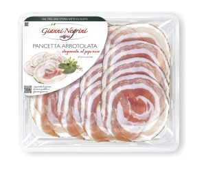 Składniki: boczek wieprzowy, sól, dekstroza, przyprawy, naturalne aromaty, przeciwutleniacz E301, konserwanty E250, E252 Masa netto: 110g Wartości odżywcze w 100g: Energia 2179kj/ 528kcal Tłuszcz 52,0g w tym kwasy tłuszczowe nasycone 17,0g Węglowodany 0,0g w tym cukry 0,0g Białko 15,0g Sól 3,0g Kraj pochodzenia: Włochy Sposób przechowywania: przechowywać w temperaturze pomiędzy 0°C i +4°C. Po otwarciu spożyć w ciągu 24h Data ważności: