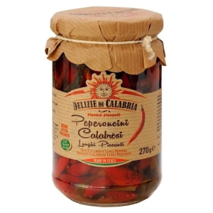 Tradycyjne kalabryjskie papryczki w lekkiej zalewie – niewielkie, intensywne i gotowe do ostrego podkręcania dań. Klasyka z południa Włoch w pikantnym wydaniu.