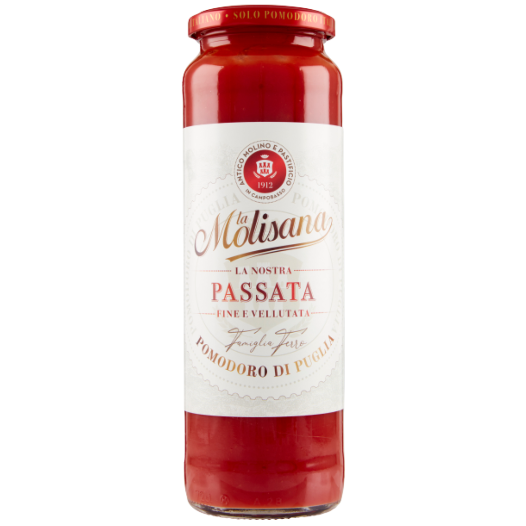 Przecier z pomidorów uprawianych w Apulii – regionie o najsilniejszym słońcu i najdłuższych zbiorach. Gładka passata o łagodnym smaku i naturalnej głębi.