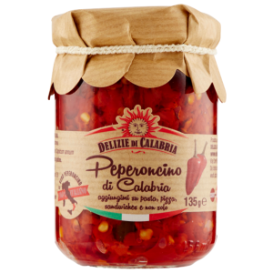Pikantna pasta z kalabryjskich papryczek – drobno siekane peperoncino w oleju, bez kompromisów w ostrości. Mała porcja, duży ogień.