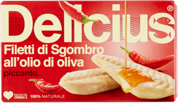 Pikantne filety z makreli w oliwie (Filetti di sgombro piccante) 125g - Delicius to wyjątkowy produkt kulinarny, który łączy w sobie smakowitość makreli z delikatnym pikantnym akcentem. Są to filety makreli marynowane w oliwie z dodatkiem aromatycznych przypraw, które nadają im wyjątkowego smaku.