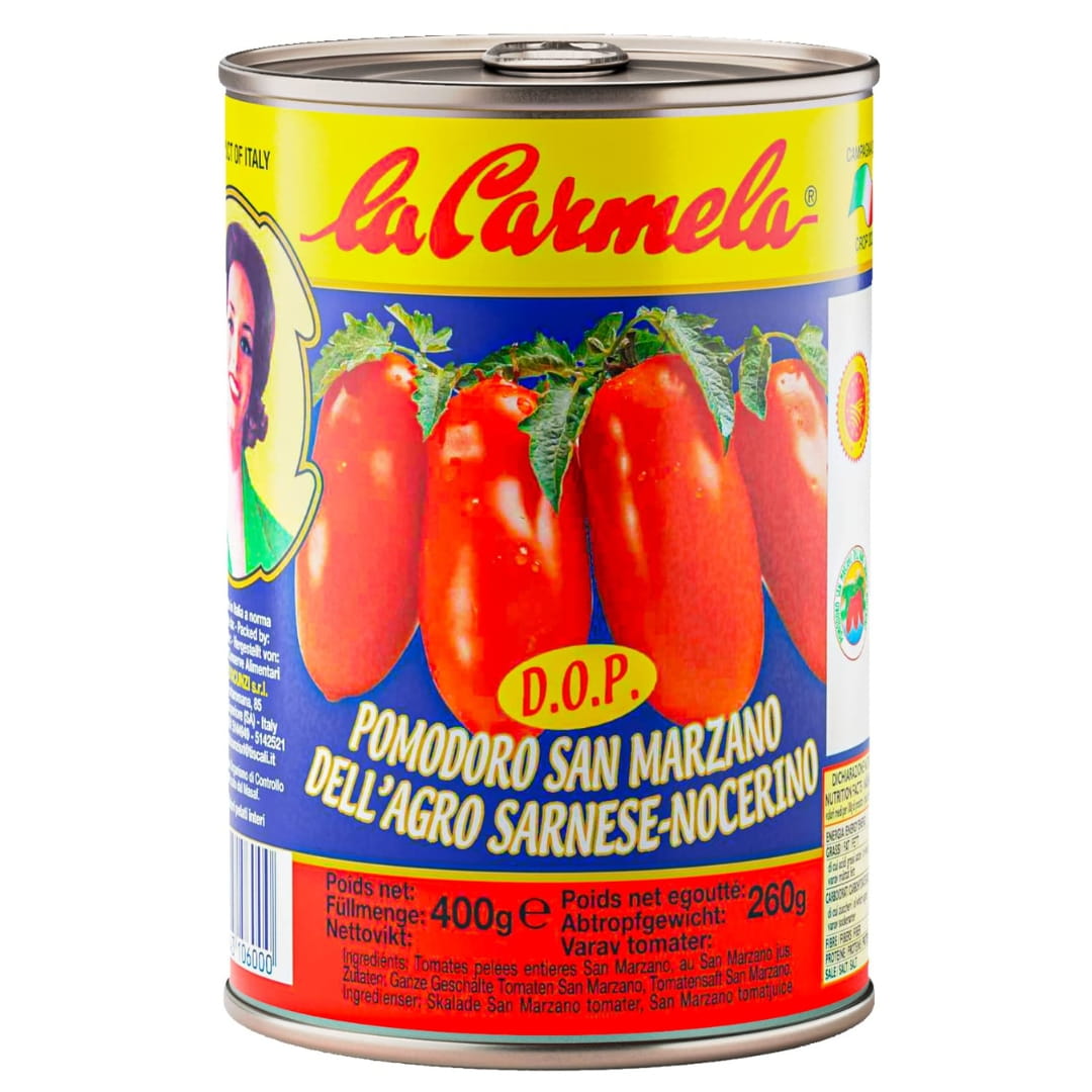 San Marzano to pomidorowa legenda – podłużne, mięsiste i pełne smaku. La Carmela daje je bez skórek, w gęstym soku, gotowe do wrzucenia do sosu, zupy albo pieca. Prosto, klasycznie, po włosku.