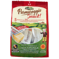 To małe porcje klasycznego Parmigiano Reggiano, podzielone na wygodne kostki po 20 gramów. Bez dodatków, bez kombinowania – po prostu porządny, długo dojrzewający ser gotowy do zjedzenia prosto z opakowania.